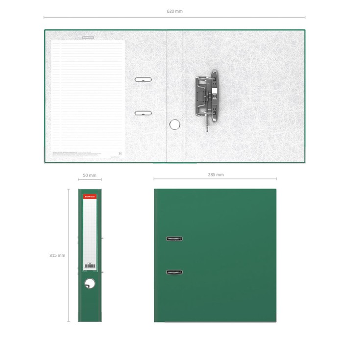 Папка-регистратор А4, 50 мм «Бизнес», собранная, зелёная, картон 2 мм, вместимость 350 листов — Характеристики