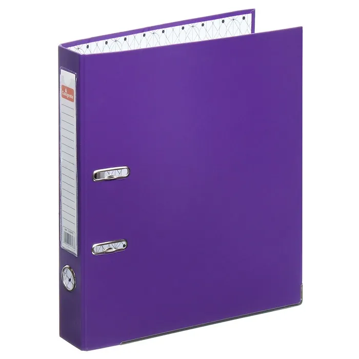 Папка-регистратор А4, 50 мм, Calligrata, ПВХ, тиснение «лен», металлическая окантовка, карман на корешок, собранная, фиолетовая, микс — Характеристики