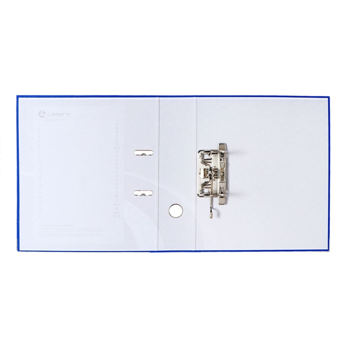 Папка-регистратор LAMARK РР с арочным механизмом изготовлена из плотного картона, с внешней стороны заламинированного полипропиленовой пленкой (РР) с текстурой "лен", внутри оклеена бумагой с алфавитно-цифровым полем для классификации на левой стороне.