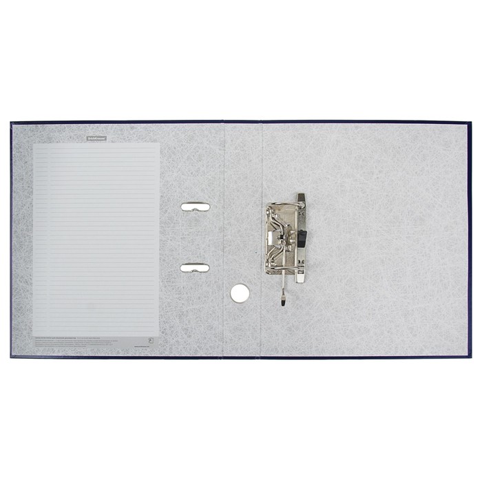 Папка - регистратор формата А4 снабжена стальным арочным механизмом с никелевым покрытием. Изготовлена из картона толщиной 1.75 мм, покрытого специальным износостойким материалом с фактурным тиснением. Корешок папки шириной 50 мм оснащен прозрачным пластиковым карманом со сменной этикеткой для маркировки. Для удобства использования на корешке имеется металлическое кольцо для захвата. Металлические фиксаторы удерживают папку в закрытом виде даже при максимальном наполнении. Вместительность до 350 листов бумаги плотности 80 г/м². На форзаце есть шаблон для оглавления.