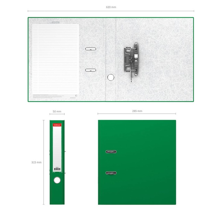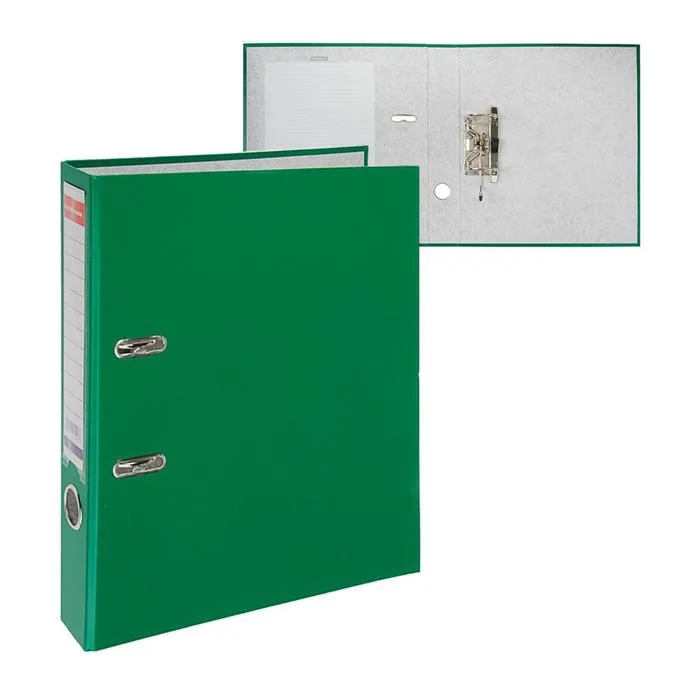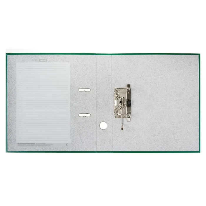 Папка - регистратор формата А4 снабжена стальным арочным механизмом с никелевым покрытием. Изготовлена из картона толщиной 1.75 мм, покрытого специальным износостойким материалом с фактурным тиснением. Корешок папки шириной 50 мм оснащен прозрачным пластиковым карманом со сменной этикеткой для маркировки. Для удобства использования на корешке имеется металлическое кольцо для захвата. Металлические фиксаторы удерживают папку в закрытом виде даже при максимальном наполнении. Вместительность до 350 листов бумаги плотности 80 г/м². На форзаце есть шаблон для оглавления.