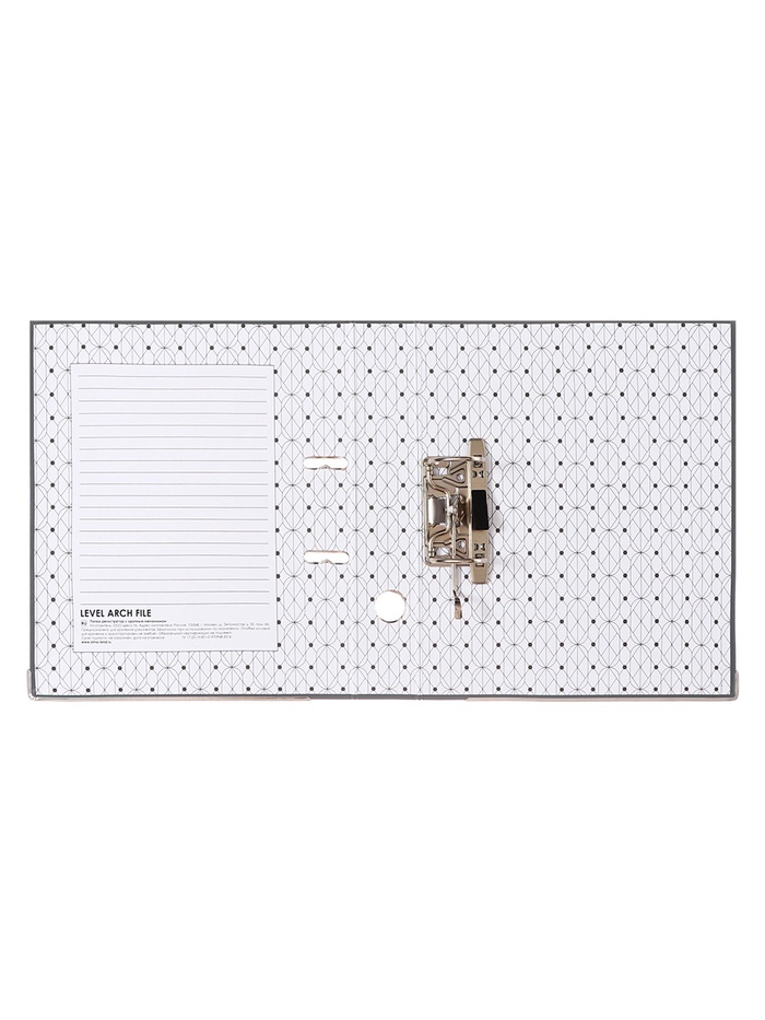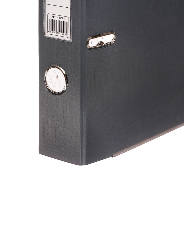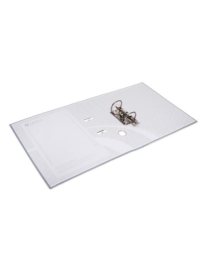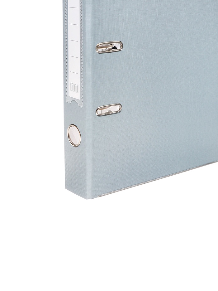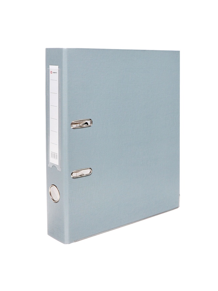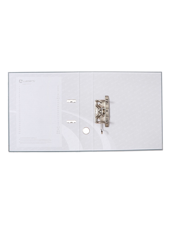 Папка-регистратор с арочным механизмом изготовлена из плотного картона, с внешней стороны заламинированного полипропиленовой пленкой (РР) с текстурой "лен", внутри оклеена бумагой с алфавитно-цифровым полем для классификации на левой стороне.