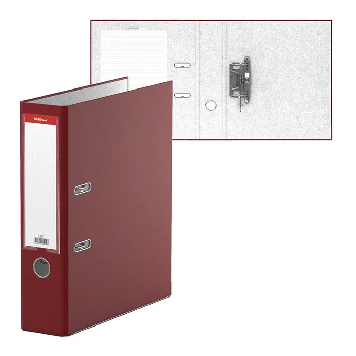 Папка-регистратор А4, 70 мм, ErichKrause «Бизнес», собранный, бордовый, пластиковый карман, металлический кант, картон 2 мм, вместимость 450 листов — Характеристики