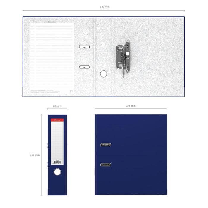 Папка-регистратор А4, 70 мм, ErichKrause, Standard, бумвинил, с этикеткой на корешке, нижний металлический кант, синяя — Характеристики
