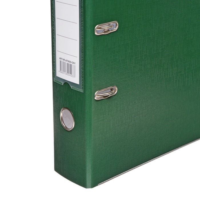Папка формата А4 с вертикальной ориентацией изготовлена из плотного картона толщиной 1,75 мм, с внешним покрытием из переплетного материала с ПВХ-покрытием, который не имеет резкого запаха и отличается долговечностью и морозоустойчивостью. Благодаря такому плотному покрытию допустима влажная уборка изделия. Ширина корешка в 75 мм позволяет разместить до 500 листов. Нижние края папки защищены металлическими уголками, что увеличивает срок службы в 2 раза. Прорези для колец на внешней крышке позволяют оставаться папке, закрытой даже при большом количестве бумаг, а надёжный арочный механизм легко справляется с ежедневными нагрузками. Корешок снабжен этикеткой для маркировки содержимого, что позволяет структурировать информацию. Такая папка станет незаменимым помощником для работников с документацией, а цветовая палитра папки-регистратора отлично впишется в офисный интерьер