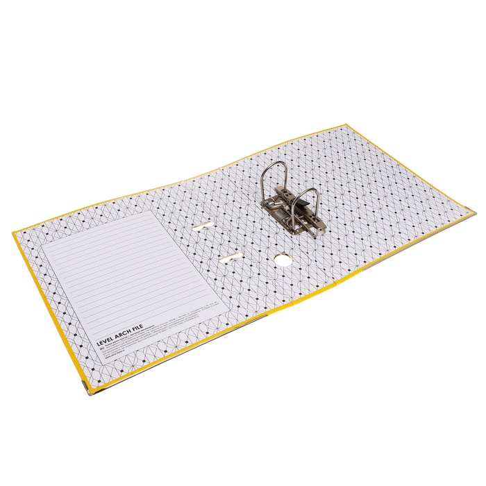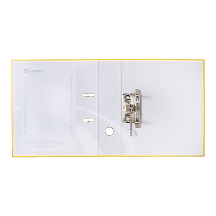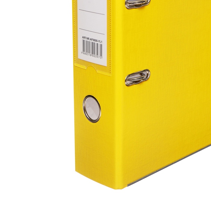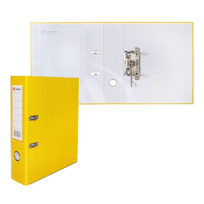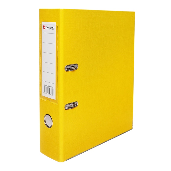 Формат: А4;Ширина корешка: 75 мм;Материал внешнего покрытия: ПВХ, текстура "лён";Материал внутреннего покрытия: бумага;Вместимость: 500 листов;Металлический протектор нижней кромки: да;Серия: Standart;Наличие кармана на корешке: да;Цвет корешка: жёлтая;Цвет папки: жёлтая;Формат папки ориентирован: вертикально;