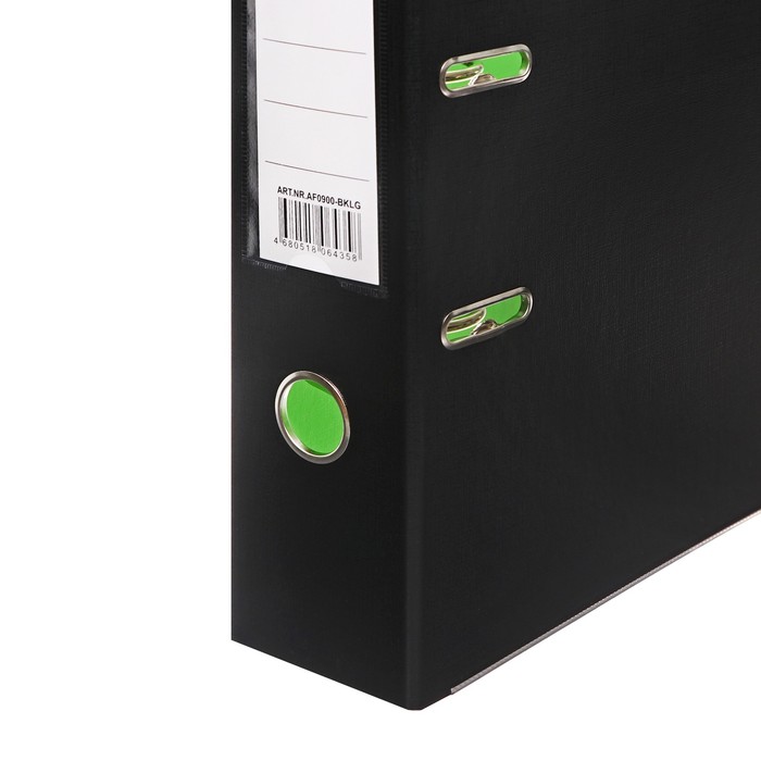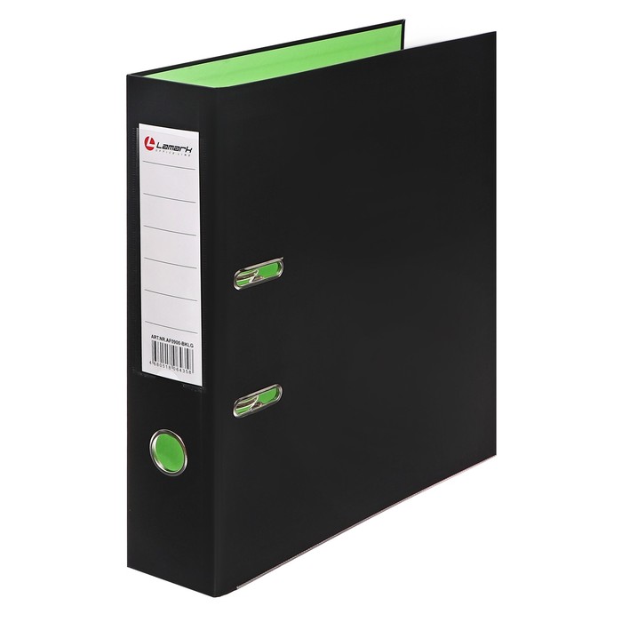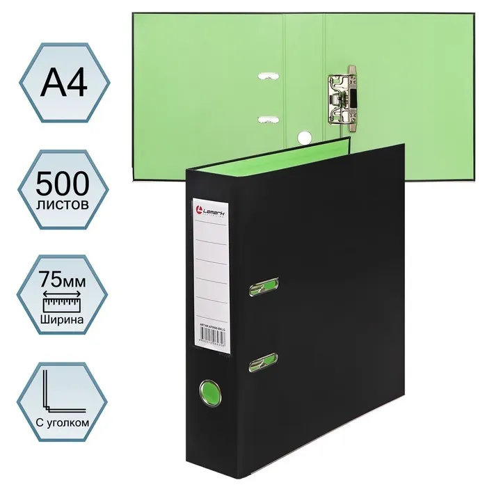 Папка-регистратор А4, 75 мм, Lamark, ПВХ, двухстороннее покрытие, металлическая окантовка, карман на корешок, собранная, черный/зелёный — Характеристики