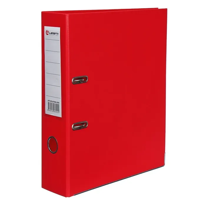 Папка-регистратор А4, 75 мм, Lamark, ПВХ, двухстороннее покрытие, металлическая окантовка, карман на корешок, собранная, красный/красный — Характеристики