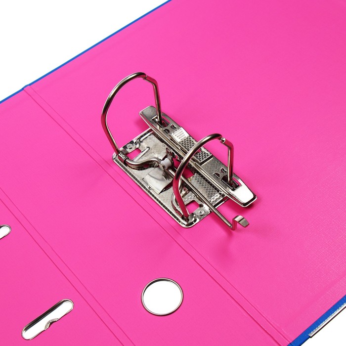 Папка-регистратор А4, 75 мм, Lamark, ПВХ, двухстороннее покрытие, металлическая окантовка, карман на корешок, собранная, синий/розовый — Характеристики