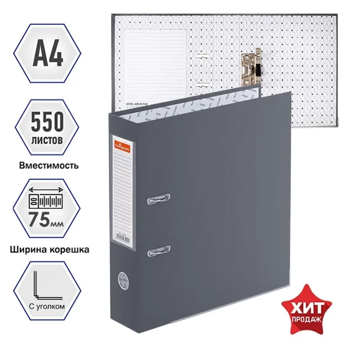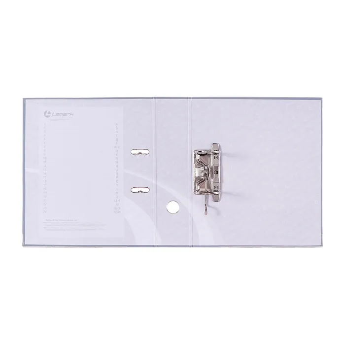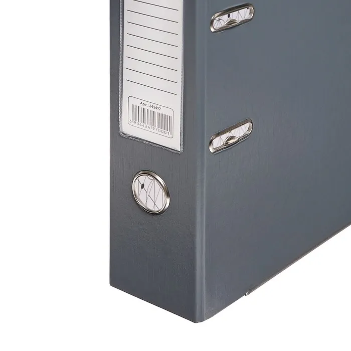Папка формата А4 с вертикальной ориентацией изготовлена из плотного картона толщиной 1,75 мм, с внешним покрытием из переплетного материала с ПВХ-покрытием, который не имеет резкого запаха и отличается долговечностью и морозоустойчивостью. Благодаря такому плотному покрытию допустима влажная уборка изделия. Ширина корешка в 75 мм позволяет разместить до 500 листов. Нижние края папки защищены металлическими уголками, что увеличивает срок службы в 2 раза. Прорези для колец на внешней крышке позволяют оставаться папке, закрытой даже при большом количестве бумаг, а надёжный арочный механизм легко справляется с ежедневными нагрузками. Корешок снабжен этикеткой для маркировки содержимого, что позволяет структурировать информацию. Такая папка станет незаменимым помощником для работников с документацией, а цветовая палитра папки-регистратора отлично впишется в офисный интерьер