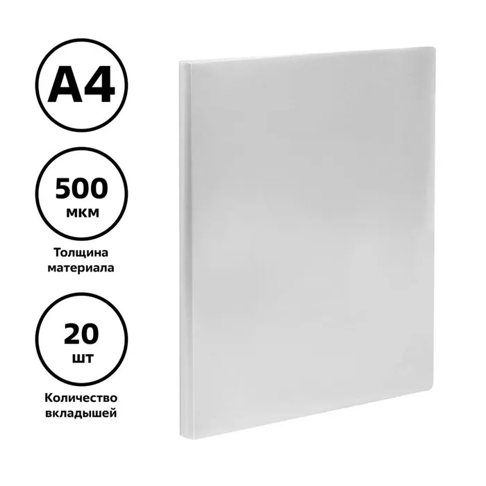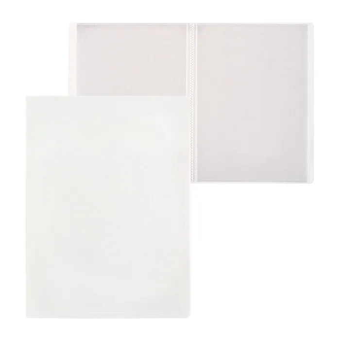 Папка с 20 вкладышами А4, 500 мкм, Calligrata, текстура "песок", белая. Папка с 20 вкладышами «Calligrata – отличный помощник для хранения бумаг формата А4. Изделие выполнено из качественного пластика с фактурой «песок», сохраняющим внешний вид изделия от загрязнений и повреждений. Размер изделия составляет 310 х 235 мм. Ширина корешка – 14 мм. Тип скрепления – термосварка. Бумагам, вложенным в папку, не требуется перфорация дыроколом. Папка упакована в индивидуальный пакет. Товар подходит для персонализации.