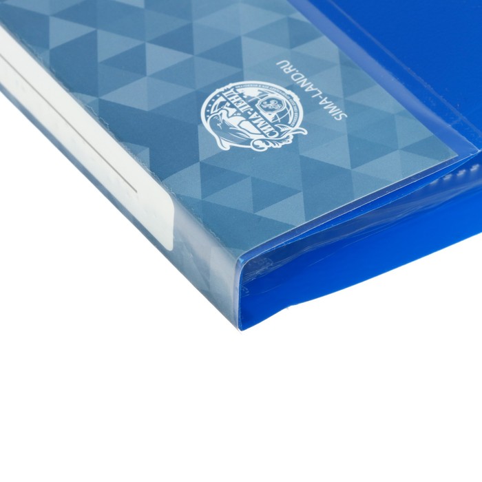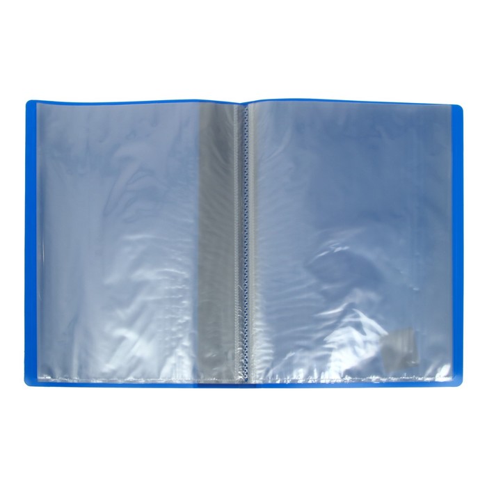 Папка с 20 вкладышами формата А4 – это функциональный аксессуар для работы и учебы, который выполнен в классическом синем цвете. Папка размером 350*235*14 мм изготовлена из плотного пластика толщиной 0,6 мм с текстурой «песок» и предназначена для транспортировки, упорядочивания и хранения бумаг. Ширина корешка 15 мм, на корешке имеется карман, тип скрепления: термосварка. Вкладыши защищают документы от повреждений и загрязнений.