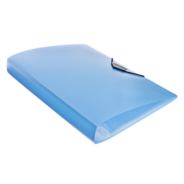 Папка с файлами Calligrata TOP "Breeze" формата А4 предназначена для хранения документов без предварительной перфорации. Изготовлена из полипропилена повышенной толщиной 0,7 мм, тиснение "кожа", цвет голубой топаз. Имеет 60 прозрачных вкладышей для удобного хранения и демонстрации документов. Надёжная застежка — резинка, крепится на удобную центральную и стильную кнопку. Файловая папка вмещает до 120 листов.