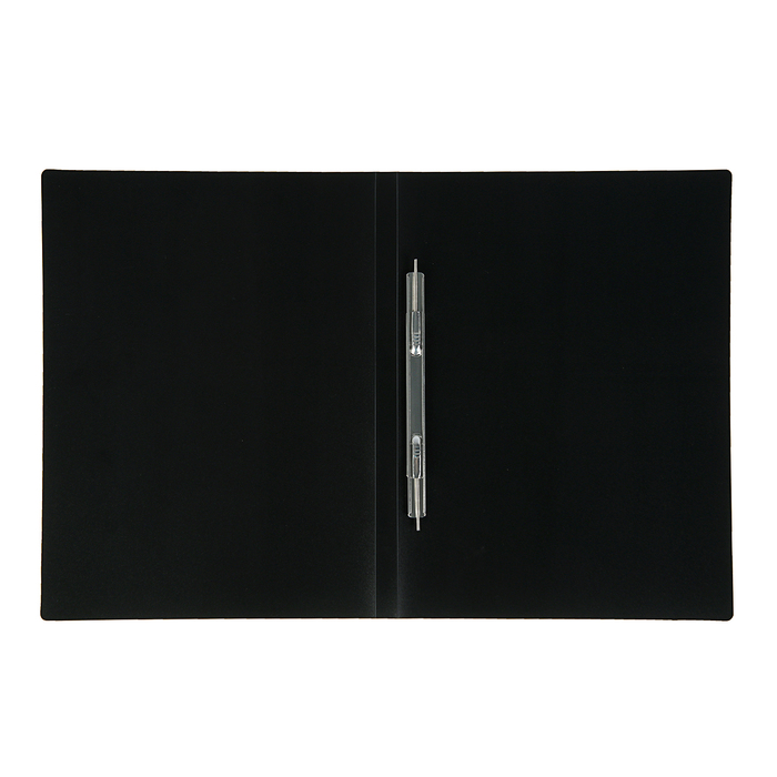 Размер: 230 х 305 х 15 мм;Толщина материала: 500 мкм;Формат: А4;Вместимость в листах: до 100 листов;Цвет: черныйТип скрепления: пружинный скоросшиватель;Ширина корешка: 15 мм.Серия «Базовая»Наличие кармана на внутренней стороне папки нетНаличие кармана на корешке папки нетЗаключение Минпромторга естьШтрихкод на штуку естьМатериал пластикТекстура «песок»
