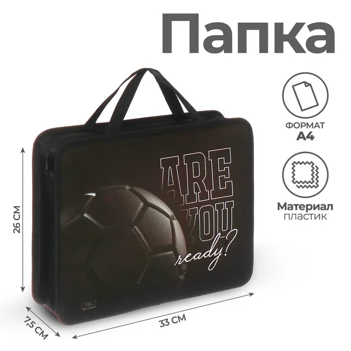 Папка с ручками А4, 330×260×75 мм, пластиковая, ручки-тесьма, «Мяч» — Характеристики