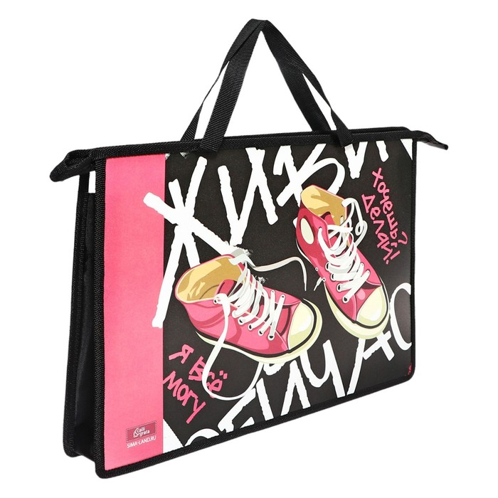 Папка с ручками А4, 335×235×55 мм, пластиковая, ручки-тесьма, «Кеды» — Характеристики