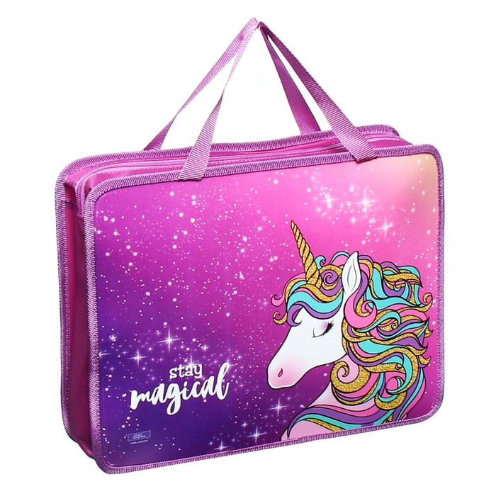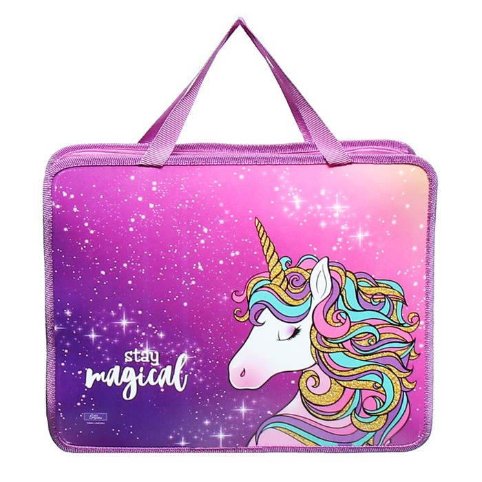 Папка с ручками А4 «Единорог», 330×260×75 мм, пластиковая, ручки-тесьма, Calligrata — Характеристики