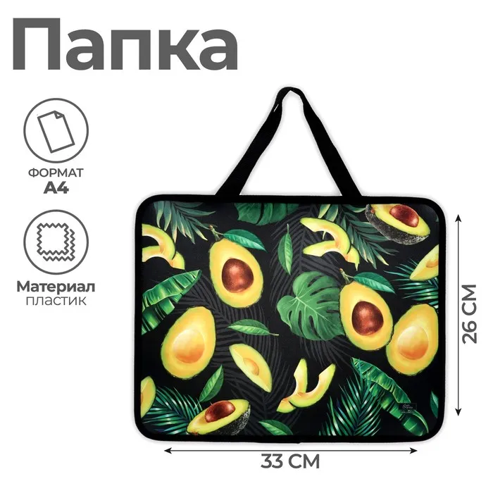 Папка с ручками «Авокадо» А4, 330×260×75 мм, пластиковая, ручки-тесьма — Характеристики