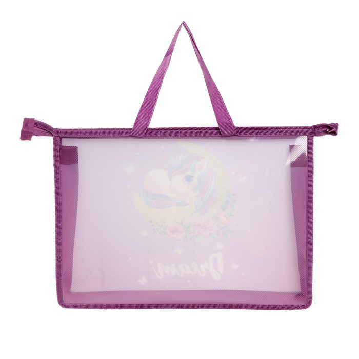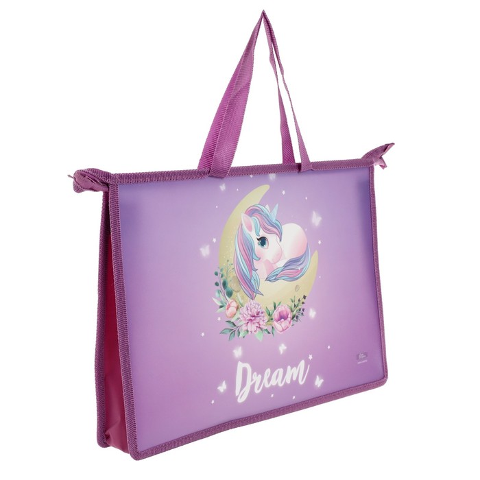 Папка с ручками «Единорожка» А4, 335×235×55 мм, пластиковая, ручки-тесьма — Характеристики