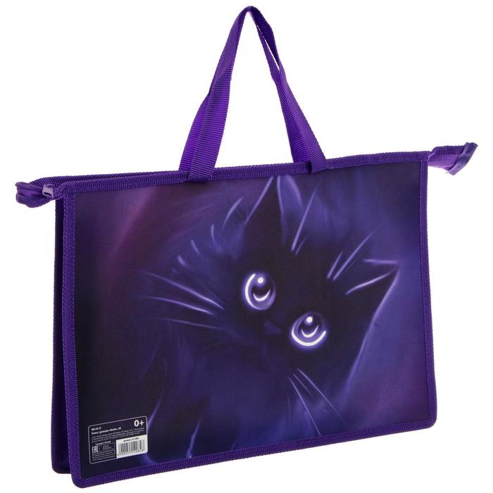 Папка с ручками «Котик» А4, 335×235×55 мм, пластиковая, ручки-тесьма — Характеристики