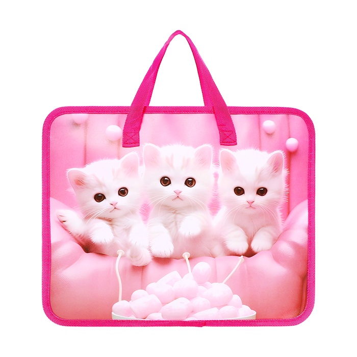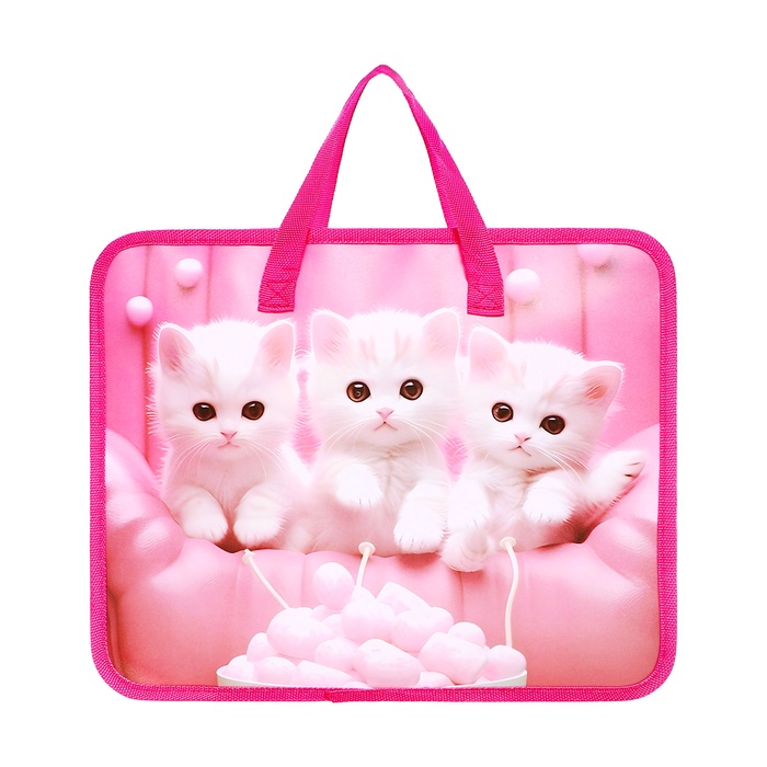 Папка с ручками пластиковая, А4, Белые котята
