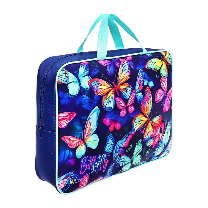 Папка с ручками текстильная А4, 350 х 265 x 75 мм, ПМД 4-20 "Неон бабочки" — Характеристики