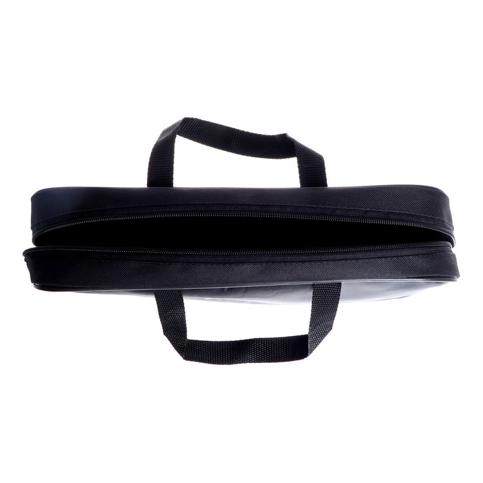 Папка текстильная на молнии с ручками, формат A4+. Размер 270 х 70 х 350 мм. Материал: износо-морозостойкий водоотталкивающий 100% полиэстер. Предназначена для транспортировки учебных принадлежностей, документов и различных аксессуаров. Имеет одно большое отделение с расширением и карманом внутри, застежка на молнии с мягким ходом. Для комфортной переноски ручки папки выполнены из прочной стропы