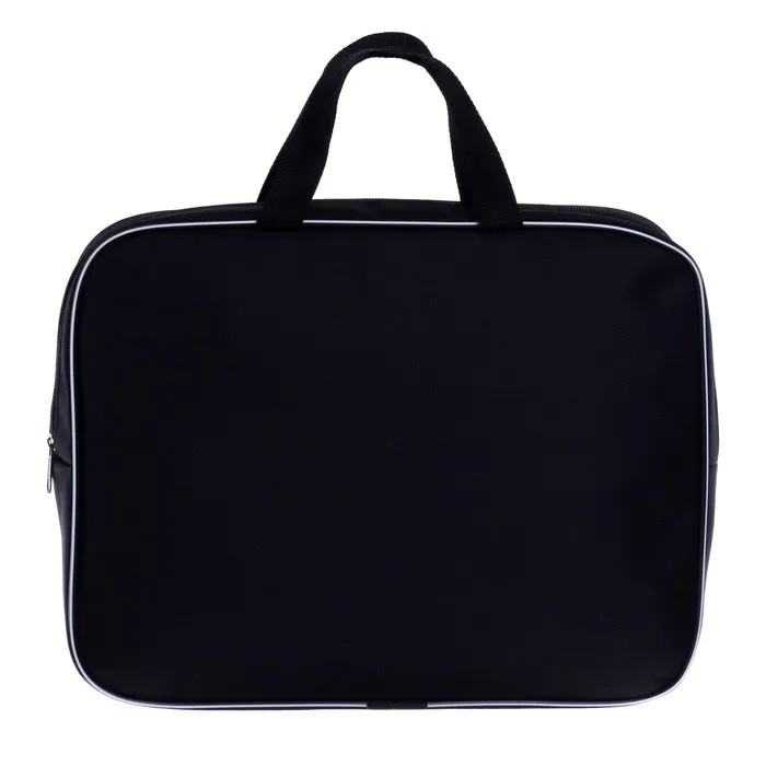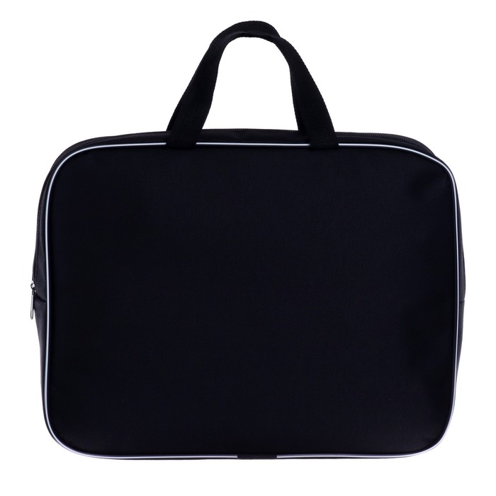 Папка текстильная на молнии с ручками, формат A4+. Размер 270 х 70 х 350 мм. Материал: износо-морозостойкий водоотталкивающий 100% полиэстер. Предназначена для транспортировки учебных принадлежностей, документов и различных аксессуаров. Имеет одно большое отделение с расширением и карманом внутри, застежка на молнии с мягким ходом. Для комфортной переноски ручки папки выполнены из прочной стропы