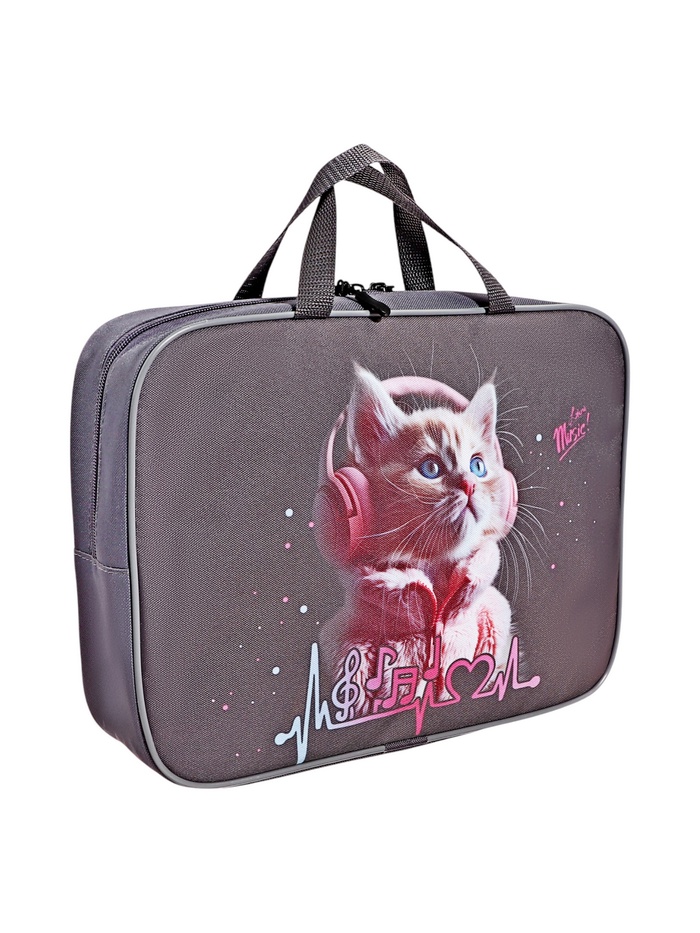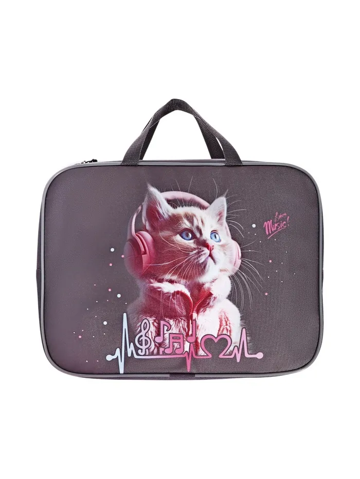 Папка с ручками текстильная А4, 350×270×80 мм, Stavia «Котик в наушниках» — Характеристики