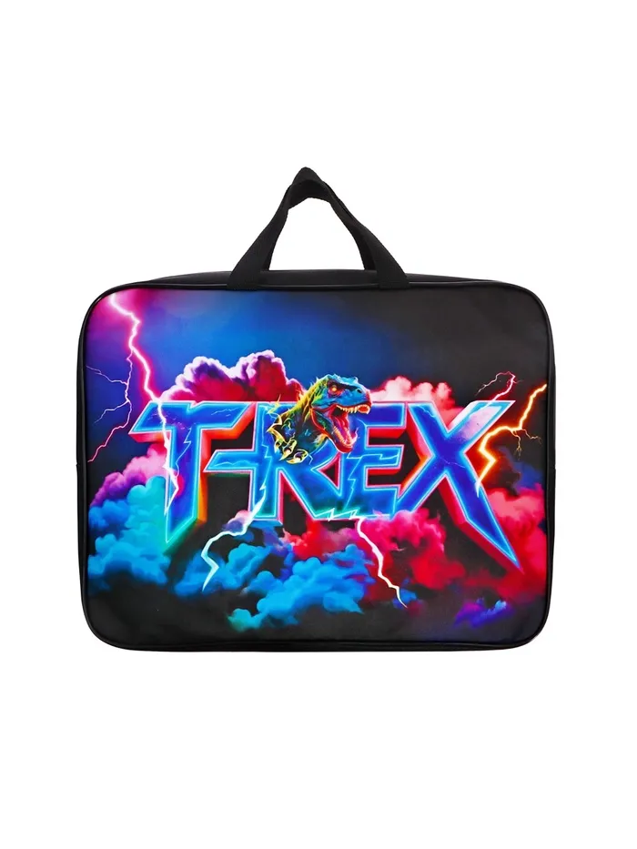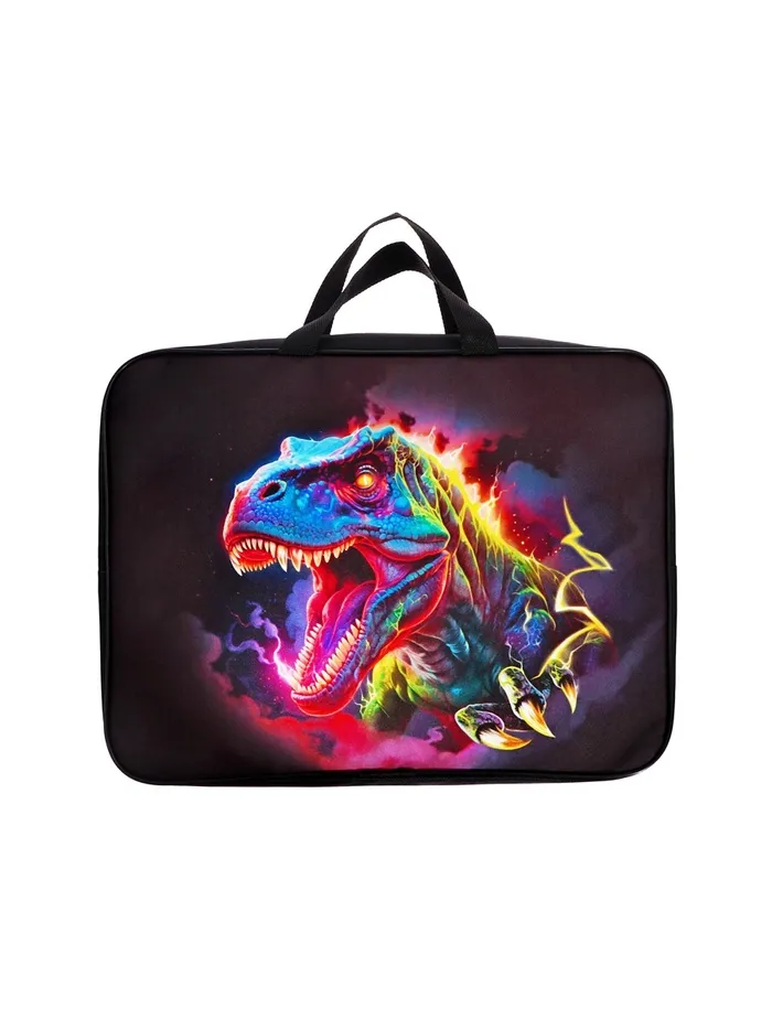 - Яркий дизайн: Контрастный принт с динозаврами выделяет папку среди стандартных аксессуаров. Чёрный цвет практичен — не показывает загрязнения.