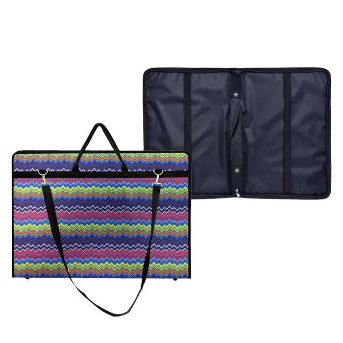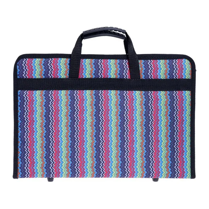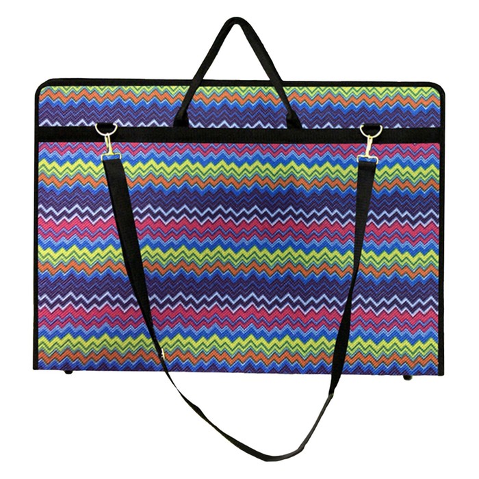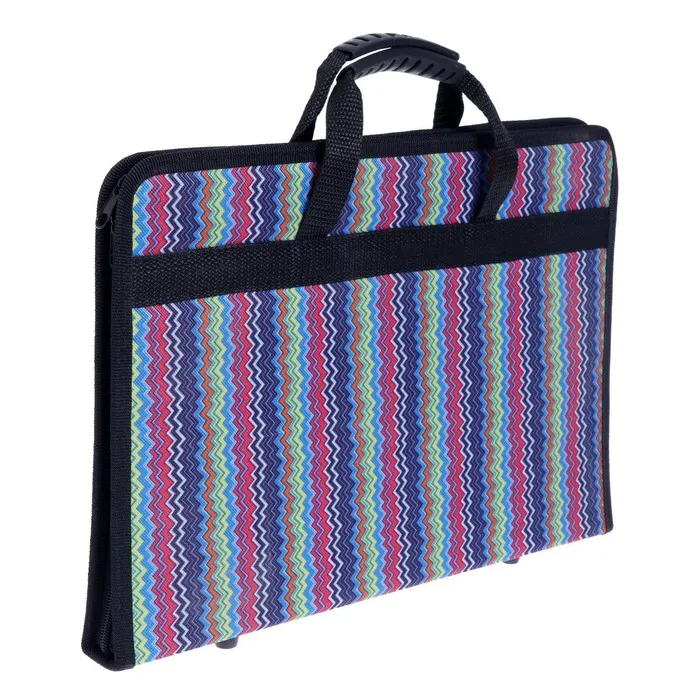 Папка - сумка А4, размер 37*25 см., предназначена для переноски и хранения альбомов, планшетов, отдельных листов и завершенных работ на бумаге. Внутри папки эластичная отстегивающаяся лента для фиксации листов. По периметру папка застегивается на широкую молнию. Для удобства переноски имеется две ручки.