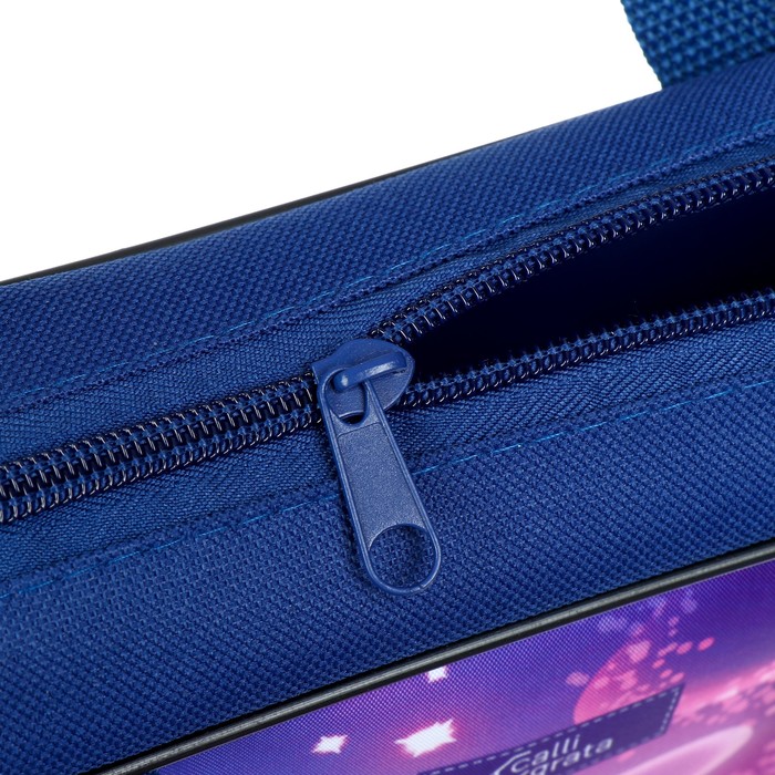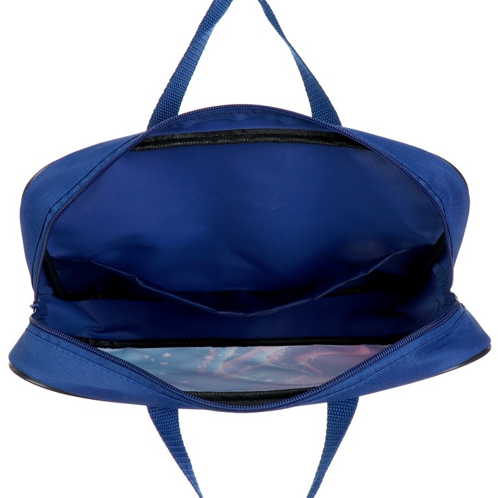Папка текстильная на молнии с ручками, формат A4+. Размер 270 х 70 х 350 мм. Материал: износо-морозостойкий водоотталкивающий 100% полиэстер. Предназначена для транспортировки учебных принадлежностей, документов и различных аксессуаров. Имеет одно большое отделение с расширением и карманом внутри, застежка на молнии с мягким ходом. Для комфортной переноски ручки папки выполнены из прочной стропы