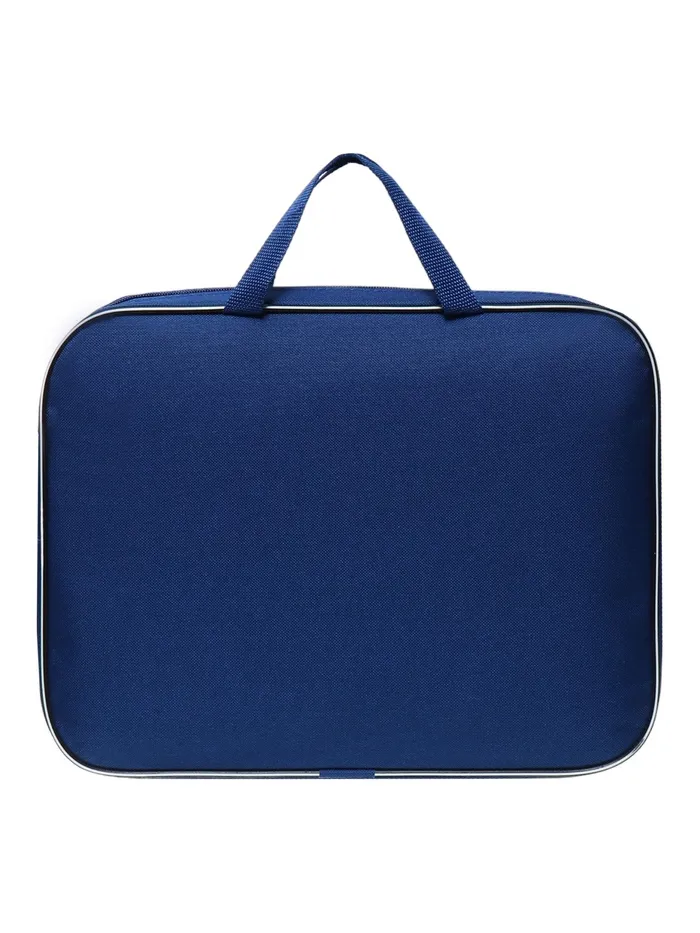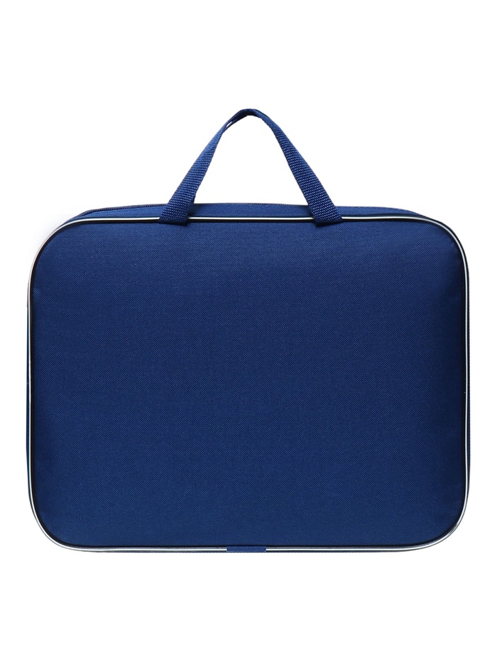 Папка текстильная на молнии с ручками, формат A4+. Размер 270 х 70 х 350 мм. Материал: износо-морозостойкий водоотталкивающий 100% полиэстер. Предназначена для транспортировки учебных принадлежностей, документов и различных аксессуаров. Имеет одно большое отделение с расширением и карманом внутри, застежка на молнии с мягким ходом. Для комфортной переноски ручки папки выполнены из прочной стропы