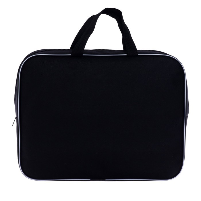Папка текстильная на молнии с ручками, формат A4+. Размер 270 х 70 х 350 мм. Материал: износо-морозостойкий водоотталкивающий 100% полиэстер. Предназначена для транспортировки учебных принадлежностей, документов и различных аксессуаров. Имеет одно большое отделение с расширением и карманом внутри, застежка на молнии с мягким ходом. Для комфортной переноски ручки папки выполнены из прочной стропы