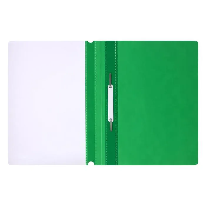 - Прозрачный верхний лист позволяет определить содержимое, не открывая скоросшиватель, который к тому же снабжен сменным пластиковым корешком, что дает возможность структурировать информацию. Благодаря гладкой фактуре и насыщенному цвету обложки папка никогда не затеряется на полке.