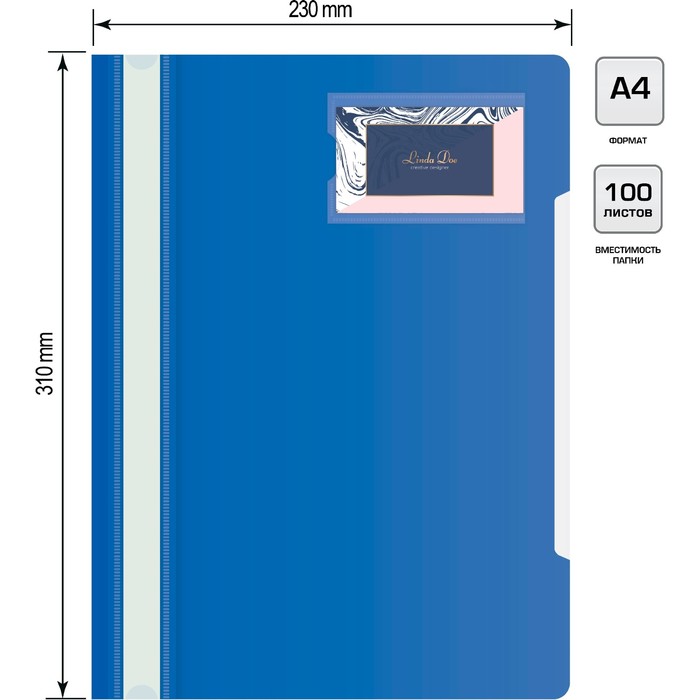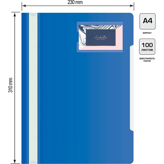 Папка-скоросшиватель Calligrata, А4, 180 мкм, карман для визитки, прозрачный верх, синяя — Характеристики