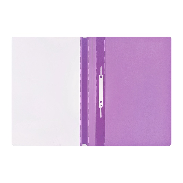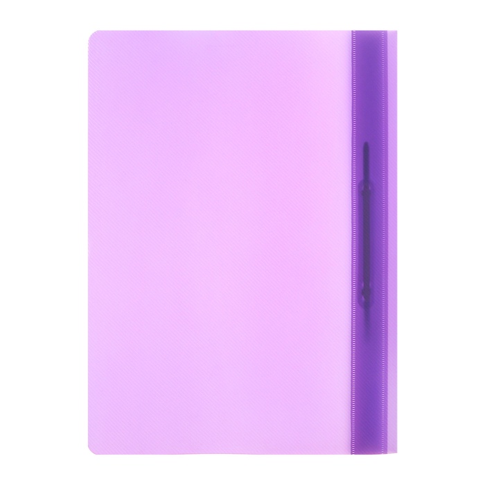 Папка-скоросшиватель формата А4 из высококачественного пластика с текстурой поверхности "диагональ", на которой не видно отпечатков пальцев и мелких царапин. Предназначена для быстрого сшивания, хранения и просмотра документов. Цвет папки – ассорти: голубой, мятный, розовый, фиолетовый. Механизм - механический скоросшиватель; прозрачный верхний лист; усиленный пластиковый корешок с прозрачной полосой для информационной карточки Папка вмещает до 130 бумажных листов. Размер - 312х230 мм, толщина верхнего листа - 0.12 мм, толщина - 0.18 мм. Код и штрих-код на каждой единице товара.