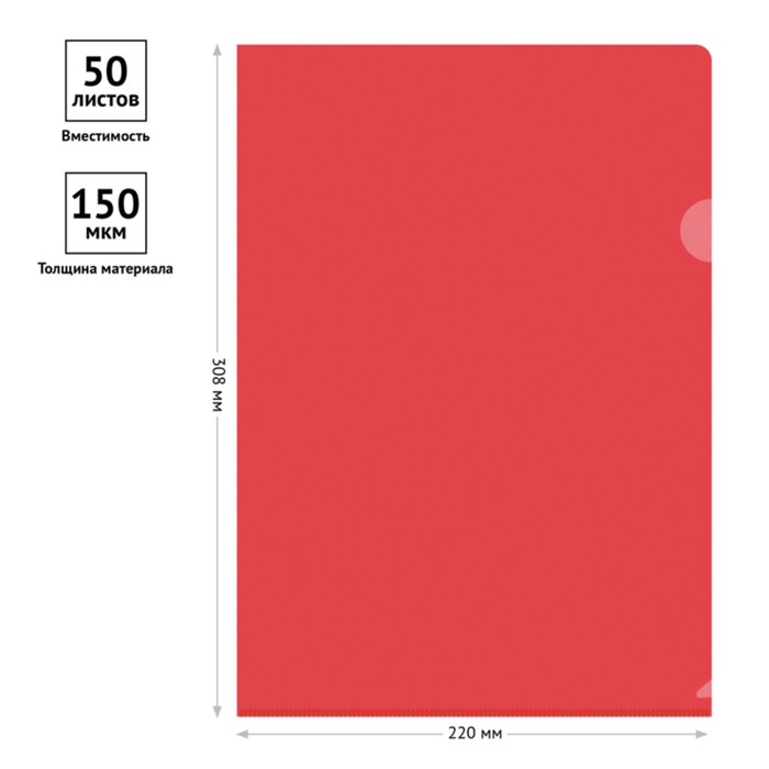 Папка-уголок Calligrata, формата A4, изготовлена из пластика толщиной 150 мкм, красного цвета.