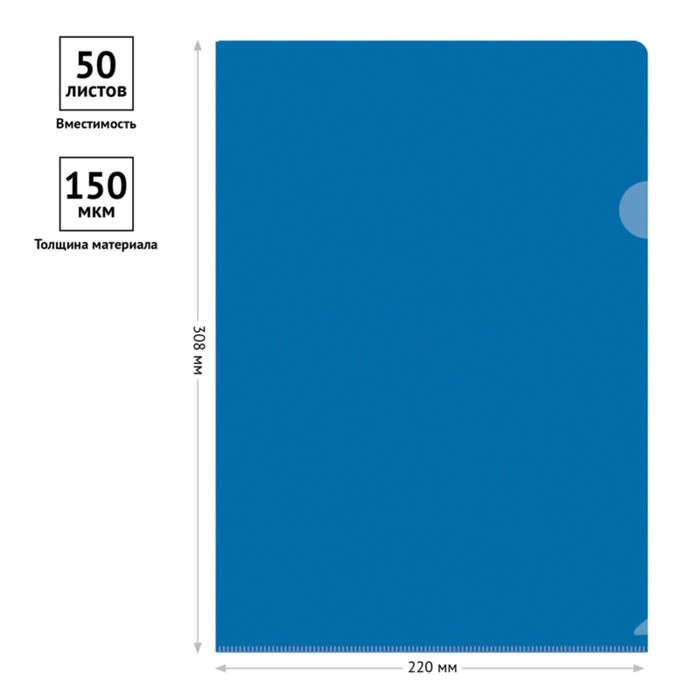 Папка-уголок Calligrata, формата A4, изготовлена из пластика толщиной 150 мкм, синего цвета.