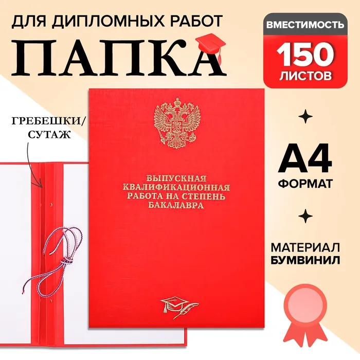 Папка "Выпускная квалификационная работа на степень бакалавра" бумвинил, гребешки/сутаж, без бумаги, цвет красный (вместимость до 150 листов) — Характеристики