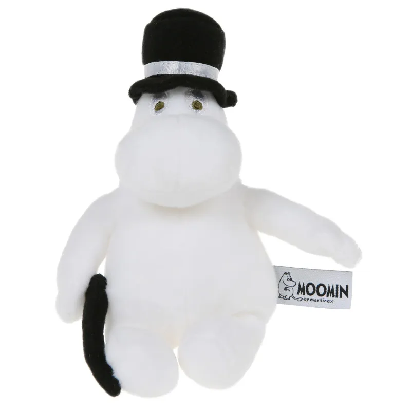 Мягкая игрушка Муми-папа с наполнителем из бобов умеет сидеть прямо и уверенно.