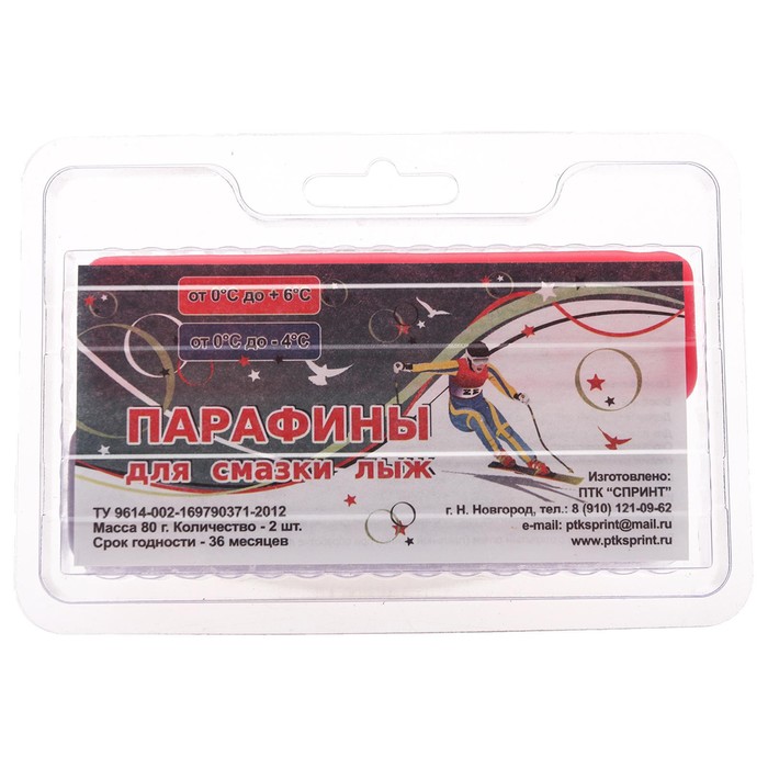 Парафин для лыж, 2 шт., К-Ф, от +6 до -4°C, 80 г — Характеристики