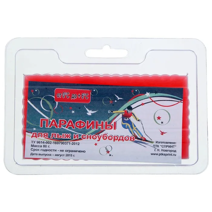 Парафин подходит для смазки носовой и пяточной части лыжи и обеспечит вам качественное скольжение по мягкому и подмерзшему снегу. Состоит из натуральных компонентов. Значительно сохранит ваш бюджет благодаря экономичному нанесению и невысокой стоимости. Рекомендуем использовать для пластиковых лыж в комплекте со смазкой держания. Если вы предпочитаете лыжи конькового хода, смазывайте парафином всю длину скользящей поверхности.