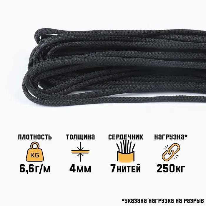 Паракорд 550, d=4 мм, 10 м, графит — Характеристики
