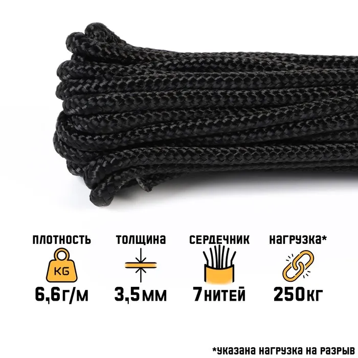 Паракорд 550 Мастер К, нейлон, черный, d=3.5 мм, 10 м — Характеристики