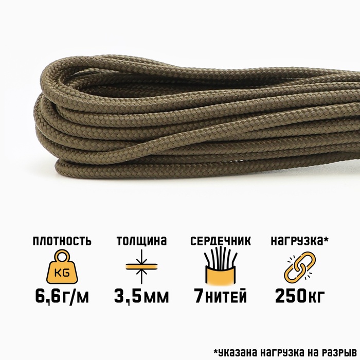 Паракорд 550, нейлон, d=3.5 мм, 10 м, хаки — Характеристики