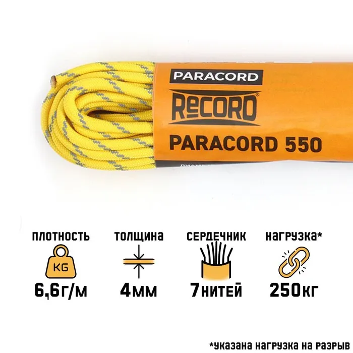 Паракорд 550 светоотражающий, нейлон, желтый, d - 4 мм, 10 м — Характеристики