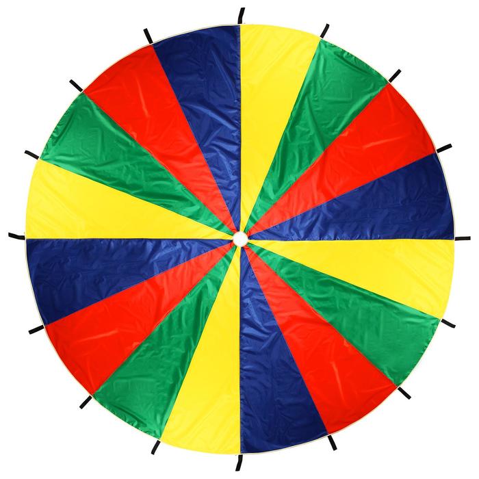 2. Положите под парашют скакалки, мячи, мешочки для метания, и т.п. Рассчитайте всех участников по их номерам. В начале игры все игроки берутся за парашют двумя руками захватом сверху и высоко поднимают парашют. Потом ведущий произносит номер игрока и какой-либо предмет. Игрок с этим номером бежит под парашют, хватает предмет и возвращается обратно до того момента, как из-под парашюта выйдет весь воздух.