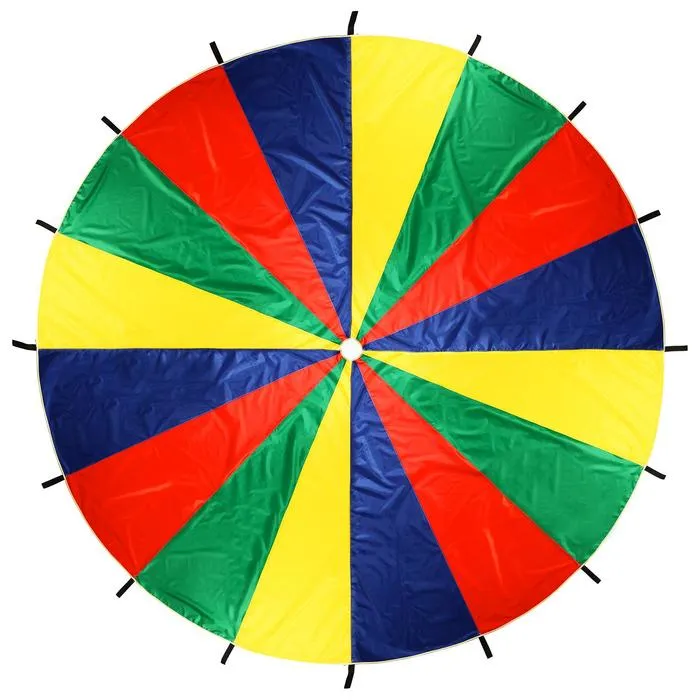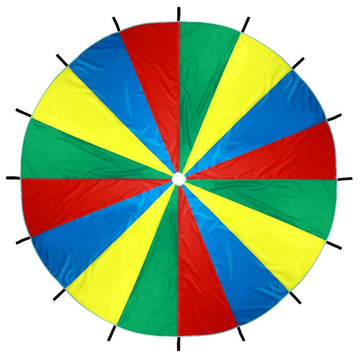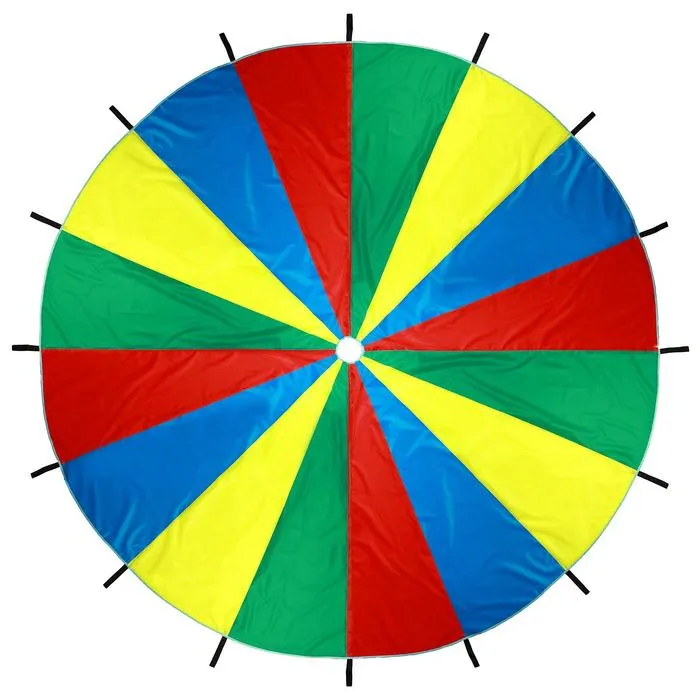 2. Положите под парашют скакалки, мячи, мешочки для метания, и т.п. Рассчитайте всех участников по их номерам. В начале игры все игроки берутся за парашют двумя руками захватом сверху и высоко поднимают парашют. Потом ведущий произносит номер игрока и какой-либо предмет. Игрок с этим номером бежит под парашют, хватает предмет и возвращается обратно до того момента, как из-под парашюта выйдет весь воздух.