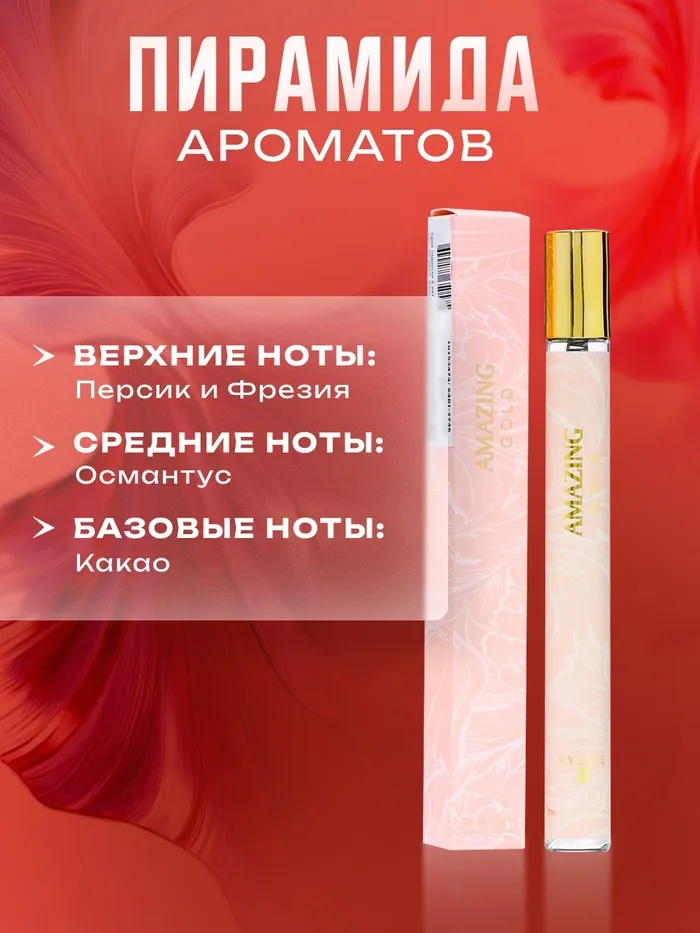 Amazing Gold – тонкий, изысканный и невероятно обольстительный женский цветочно-фруктовый парфюм, окутанный нежным сладковато-гурманским сиянием.